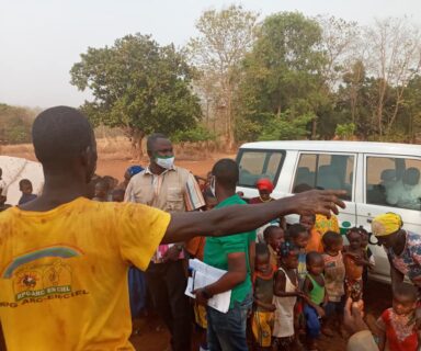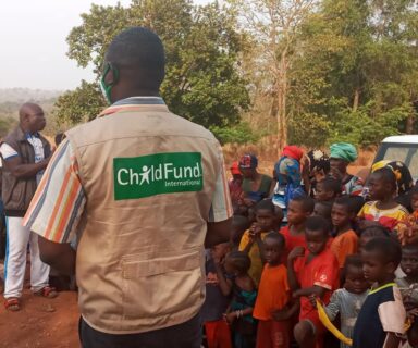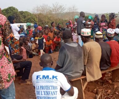 Visite conjointe de terrain par la FMK et ChildFund dans une communautés couvertes par le parrainage. Une visite qui a permi au partenaire ChildFund d’évaluer la qualité des sevices offerts aux enfants et leurs familles dans le domaine de l’èducation, la santé et la protection.